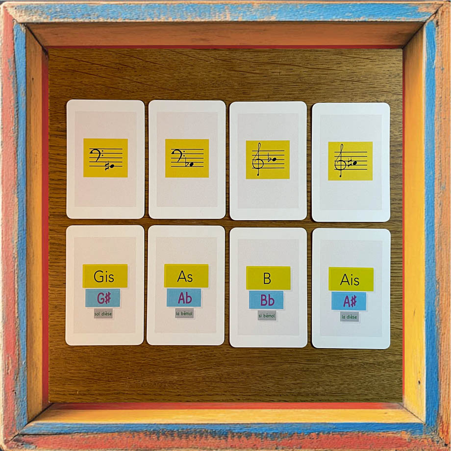 A card game to practise the alteration signs and to understand enharmonic alternation. From 6 years.